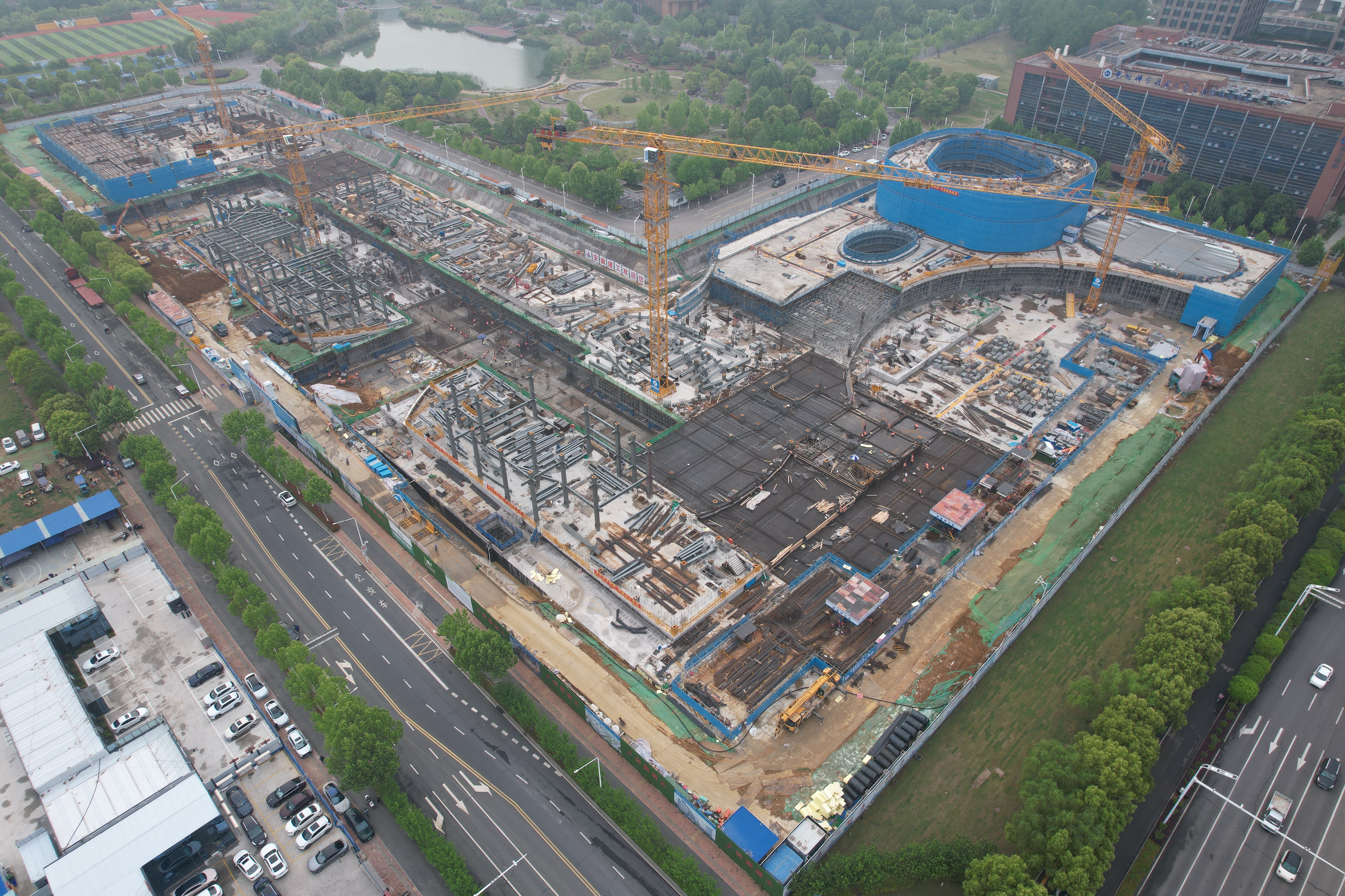 中國科大科技商學(xué)院項(xiàng)目位于合肥市高新區(qū),總建筑面積18.31萬平方米,建設(shè)內(nèi)容包括1#商學(xué)院主樓、2#綜合服務(wù)樓及地下車庫。該項(xiàng)目建成后將以中國科大雄厚的學(xué)科優(yōu)勢(shì)為基礎(chǔ),大力培養(yǎng)“懂科技、懂產(chǎn)業(yè)、懂資本、懂市場(chǎng)、懂管理”的復(fù)合型科技產(chǎn)業(yè)組織人才,助力安徽打造具有重要影響力的科技創(chuàng)新策源地和新興產(chǎn)業(yè)聚集地。截至目前,項(xiàng)目地下室結(jié)構(gòu)已封頂,1#樓B區(qū)報(bào)告廳已封頂,網(wǎng)架2已完成提升。1#樓A區(qū)商學(xué)院主樓及2#綜合服務(wù)樓進(jìn)行2層結(jié)構(gòu)施工。