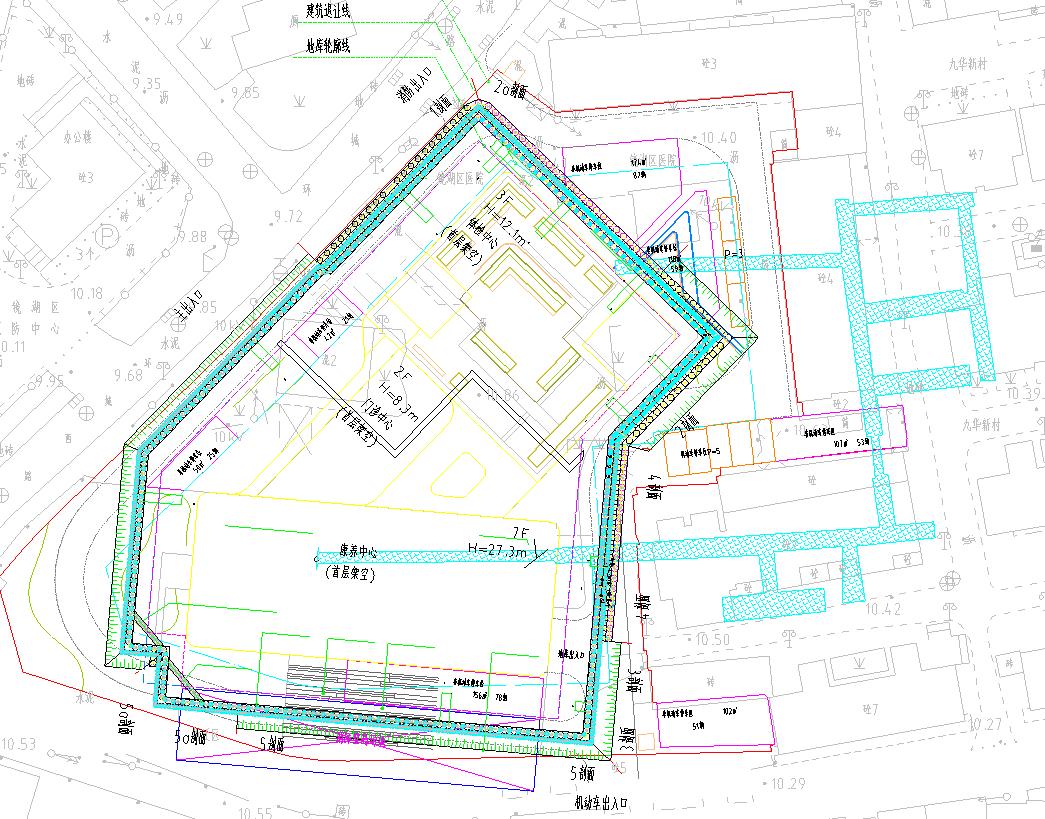 在項目場地東側支護樁施工過程中,施工人員發現疑似地下人防洞的跡象。建設單位立即組織勘察單位對紅線范圍內進行詳細勘察,最終確認此處存在地下人防洞。該人防洞埋置最深達21米,孔洞高度最高為6.7米。經與人防部門溝通了解到,人防洞大致位置已明確,且穿過項目紅線,大部分位于九華新村小區內。為消除防空洞對天然基礎及支護樁可能產生的不利影響,對整個防空洞進行加固處理勢在必行。